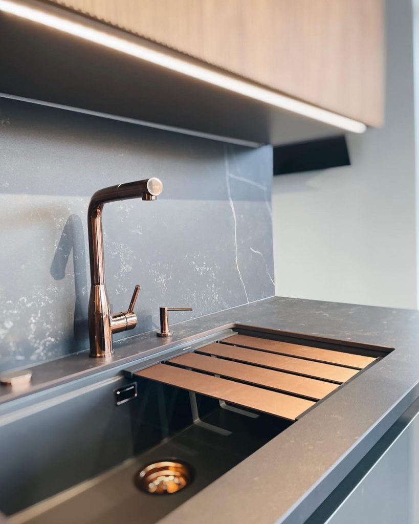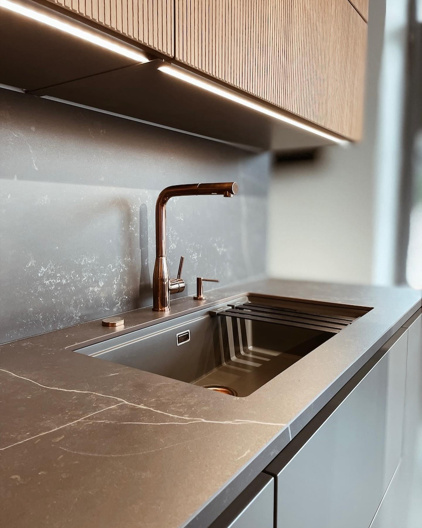Blaty, boki wyspy i okładzina ścienna gr. 2,5cm, wykonany ze spieku kwarcowego Dekton Kelya