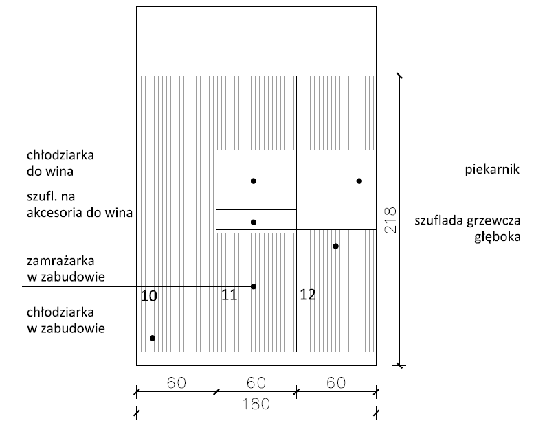 szafa do zabudowy sprzętów np. winiarki, ekspresu lub piekarnika kompaktowego + szuflada grzewcza, do pakowania próżniowego lub na akcesoria.